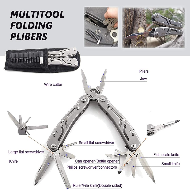 Set combinato con 12 strumenti di sopravvivenza differenti, tra cui set di 11 cacciaviti – Braccialetto Paracord 5 in 1 paracord, torcia tattica a LED a 3 modalità. lier, Fishing Tool Set Fire Starter Kit, poncho, copertina d'emergenza, fischietto, fiammiferi, candela paracord.