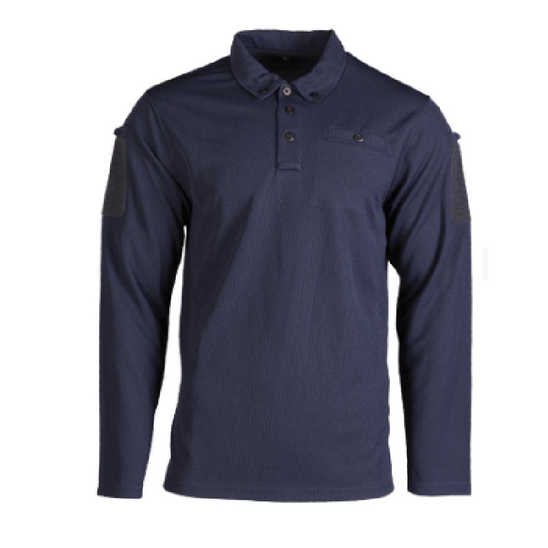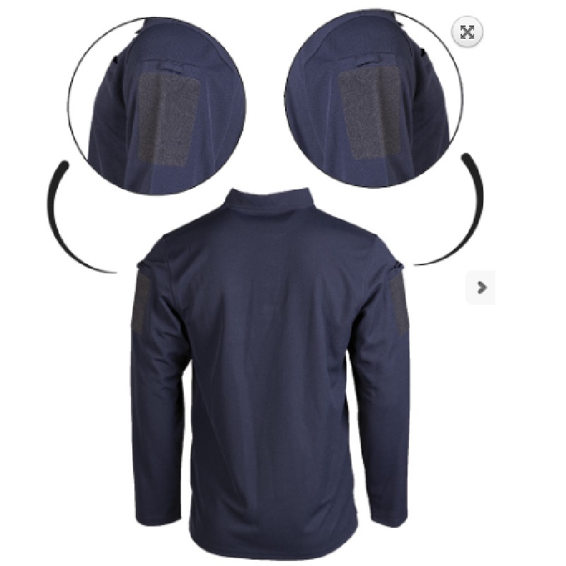 Polo tattica maniche lunghe con portapenne e velcro su maniche blu