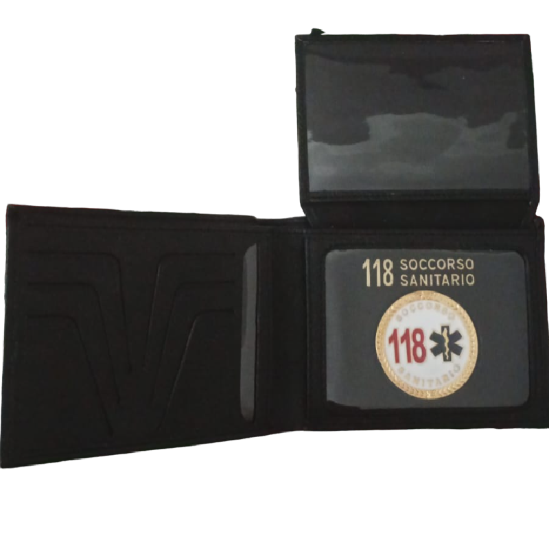 Portafogli in pelle con tasca porta banconote e porta carte di credito.
