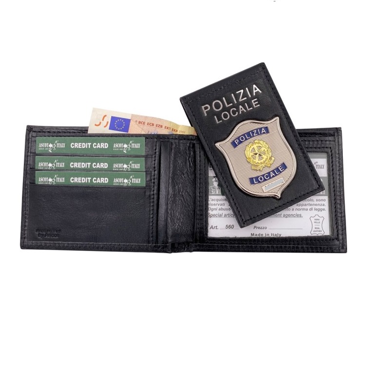 Portafoglio Ascot orizzontale in vera pelle pieno fiore con porta tesserino e porta placca, il porta placca è estraibile ed esponibile a parte. Portafoglio realizzato per una grande resistenza all'uso. alloggio per il tesserino con finestra trasparente pattella estraibile porta placca doppio scomparto banconote 2 scomparti per documenti alloggiamenti per 3 carte di credito dimensioni chiuso 12,5x9,5 cm vera pelle vitello pieno fiore