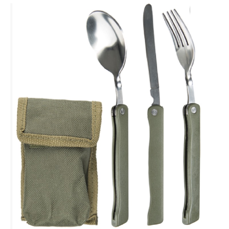 Posate pieghevoli forchetta coltello cucchiaio acciaio+custodia
